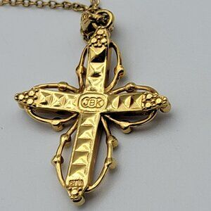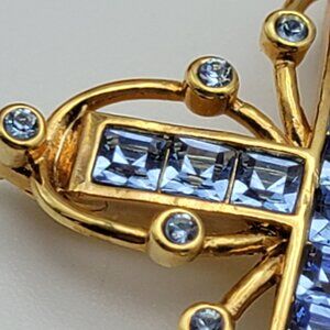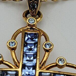 JBK Jackie Kennedy Blue Crystal Cross Necklace Gold Plated 20" Adjustable