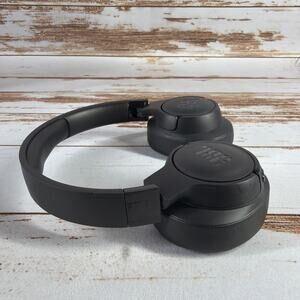 JBL Tune 700BT over-ear wireless Bluetooth headphones in black. Lightweight, foldable design with JBL Pure Bass sound. Features wireless Bluetooth streaming, built-in microphone for hands-free calls, and long-lasting battery life (up to 27 hours). Tested and confirmed working. No charging cable or audio cable included.