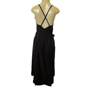 JBNY Silk Midi Dress Black V Neck Wrap Spaghetti Strap Side Slit A line M
