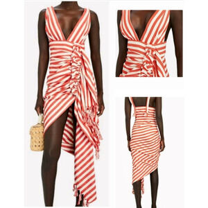 JBQ JUST BEE QUEEN Tulum chili striped goop resort midi dress nwt $635 m US-6