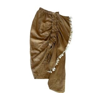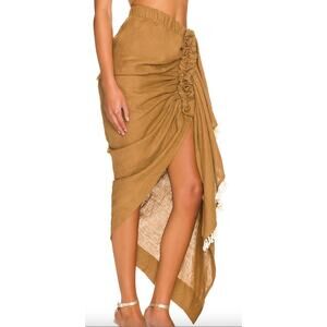 JBQ Just Bee Queen Brown Sarong Skirt XS Linen Slit Vacation Beach Designer $385
