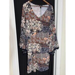 JBS Dress Plus 2x Shift Bell Sleeve pull over midi Boho Art To Wear Cottage