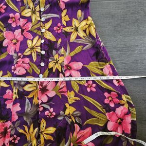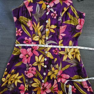 The JBS Dress in size 10. The sleeveless design with a V-neckline and button front closure. Made of rayon fabric, this long dress features back cutouts and is machine washable for easy care. The vibrant purple color and vintage accents make it a perfect choice for summer, fall, or spring seasons, adding a touch of retro charm to any wardrobe. Beautiful dress with shell buttons as shown. Excellent condition. See pictures for measurements