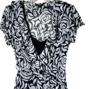 JBS Floral Print Short Sleeve Faux Wrap Midi Dress Women's Size 10 Blue/White