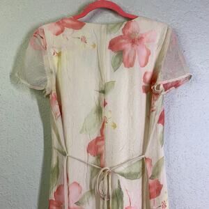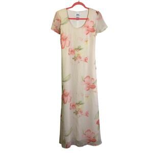 J.B.S. LTD Dress 6 Vintage 90's Y2K Scoop Neck Sheer Cap Sleeve Textured Floral Maxi