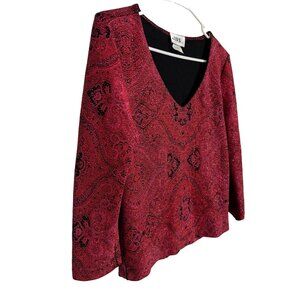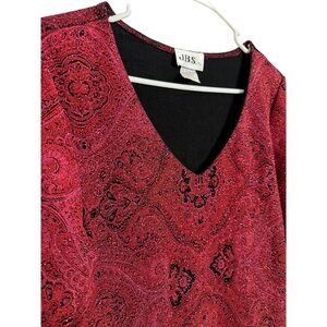 JBS LTD Red Black Shimmer Top Size Small V Neck Long Sleeve Stretchy