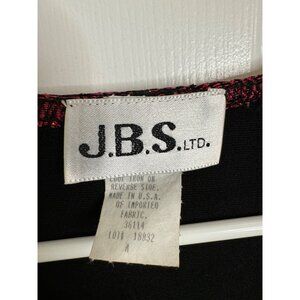 Glamorous red and black shimmer top from JBS lts. V-neck and long sleeve design add a stylish touch. Perfect for casual or evening wear. Size small fits perfectly for a sleek look.