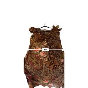 J.B.S. Ltd women’s dress in size 12. Designed in lightweight sheer chiffon fabric, this dress features an earth-tone animal print that embodies fairycore, boho, and cottagecore vibes. The flowy silhouette and soft brown hues make it perfect for both casual and dressy occasions. It is lined.