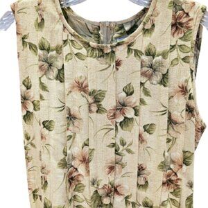 J.B.S. Ltd Linen Heavyweight Pleated Tan Floral Dress