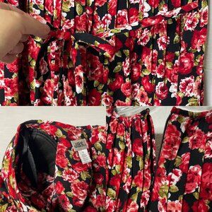 JBS Ltd presents a vintage floral faux button front dress with zipper closure in size 10. The black-red rose pattern evokes a dark romantic feel, delivering style and comfort in rayon material.