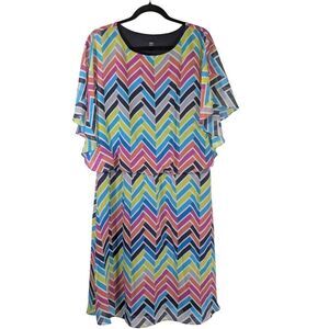 JBS Sheath Dress Multi Chevron Polyester Short Sleeve Drawstring Women's 14W