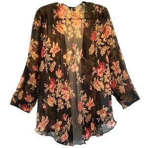 JBS Vintage Black Transparent Floral Kimono size 22W