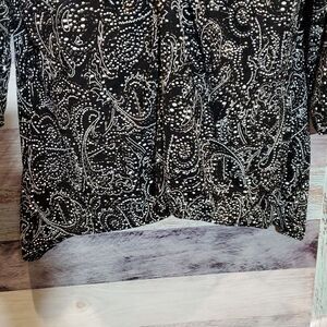 JBS Sz 5X Black Silver Paisley Sparkly Knotted Bust Dressy Blouse Plus Size
