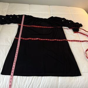 JBS Woman Dress Size 1X Scoop Elastic Neck On Off Shoulder Black White Pearls