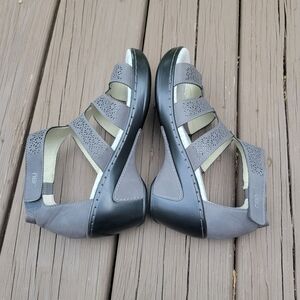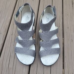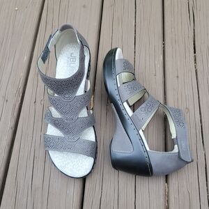 JBU By Jambu Bianca Grey Faux Leather Open Toe Wedge Heel Gladiator Sandals 8
