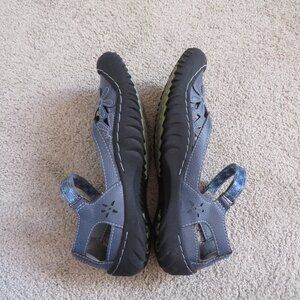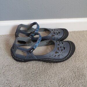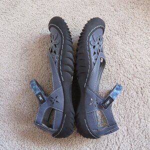 JBU By Jambu Shoes Womens 8M Wildflower Mary Jane Blue Floral Flats Velcro Cutouts