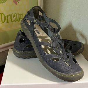 Stylish navy sandals with a unique cut-out design. Ideal for casual wear.