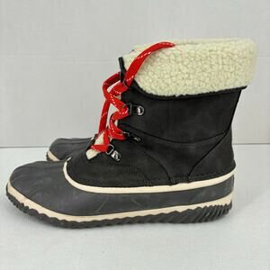 JBU Jambu Lizzy Duck Boot Size 10 Gray Waterproof Rubber Leather Faux Fur Lined