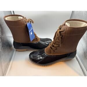 JBU Maplewood Women’s Rain & Snow Boots – Navy/Tan, Size 9.5M
