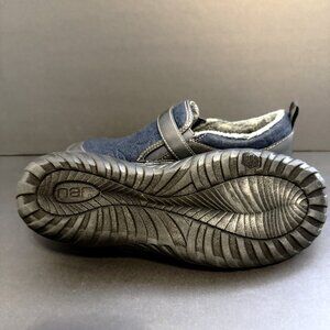 JBU Tide Women's Slip On Shoes 8W Blue, Leather Accents, Memory Foam, Faux Fur