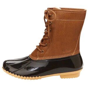 Inspired by the great outdoors, a traditional water resistant lace up duck boot featuring faux fur lining and comfortable insoles to ensure maximum coziness for the great outdoors and indoors. Water resistant. Approximat 10 1/2" shaft height and 7" circumference. Contoured ethylene vinyl acetate insoles. Faux fur lining keeps you cozy.