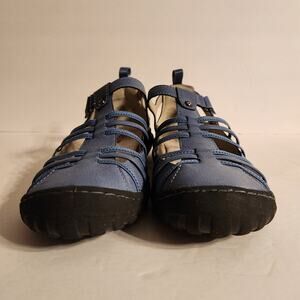 ITEM: JBU by Jambu Peace Womens 7.5M Mary Jane Flat Blue Denim Faux Leather Closed Toe