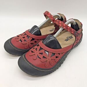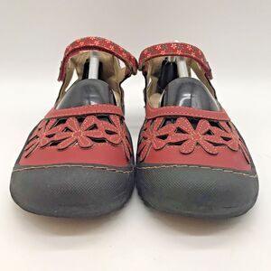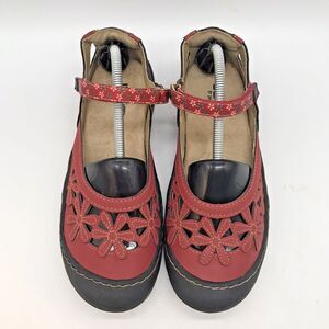 JBU by Jambu Wildflower Mary Janes. Women's size 7.5M, Red Floral Cut Out, Non-Slip Comfort Shoes. with hook & loop Closure.
