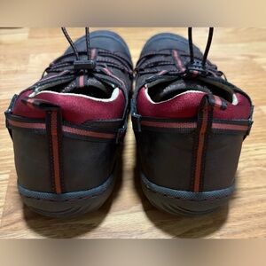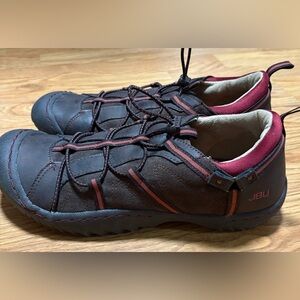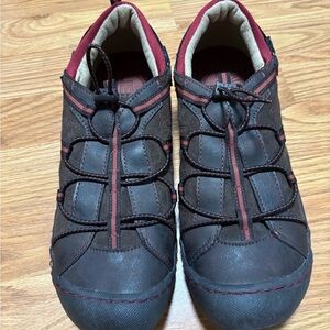 Stylish brown shoes with red accents. Perfect for casual wear.