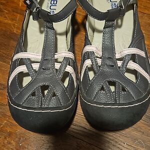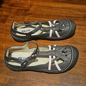 JBU memory foam by JAMBU Pre-owned good condition size 8.5 gray line pink adjustable strap