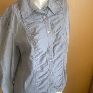 JBXR San Francisco Long-Sleeve Button-Through Ruched Poplin Top size Large