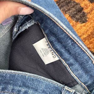 J Brand Jules Rhinestone Tuxedo Stripe Straight Leg Jeans in Urbanite Sz 26. Very gently worn in excellent condition. Laying flat waist measures 14 inches, rise is 11 inches and inseam is 28.5 inches.
