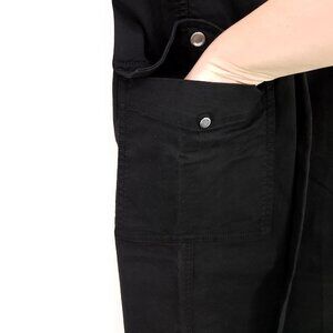 These JBrand Pleated Cargo Pants are high rise, black, cropped trousers for women. The size 25 pants feature a button fly and are made from a durable cotton blend.