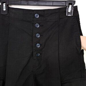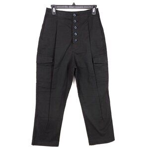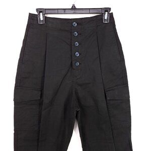 JBrand Pleated Cargo Pant Button Fly Womens 25 High Rise Black Crop Trouser