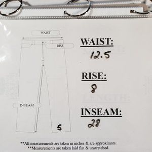 Size 26. See photo for approximate measurements laying flat