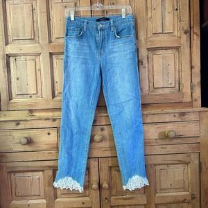 J. Brand Women's Size 26 Ruby Fortuny Destruct Jeans Lace Trim Classic Blue