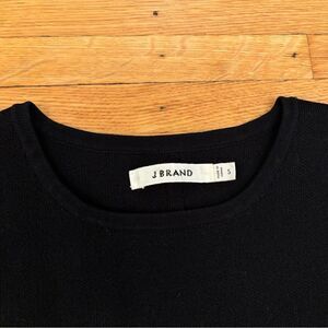 J Brand black sweater. Heavy weight. 49% viscose, 26% cotton, 24% nylon, 1% spandex. Armpit to armpit 20 inches. Length in front 21 inches (a bit longer in back). Size small. Good condition.