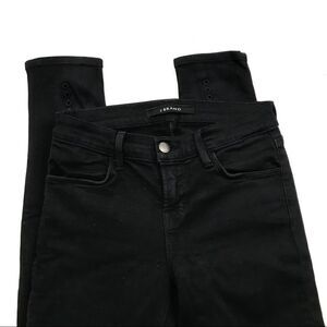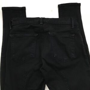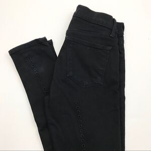 J Brand black super skinny jeans. Row of holes all down the back from under the pockets down to the ankle. Excellent used condition all measurements are approximate