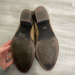 In good preowned condition. One of the back pieces to pull on boots will need to be stitched back on. 2” heel