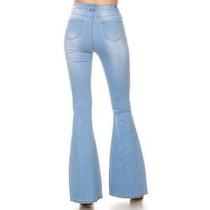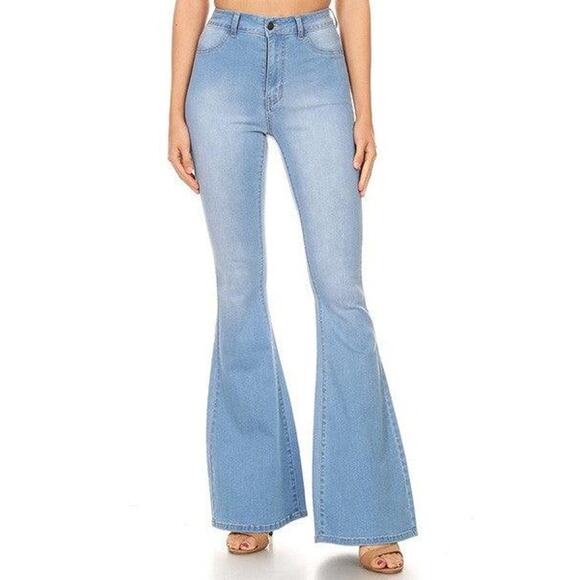 JC & JQ Bell Bottom Flare Stretchy Light Wash Blue Jean Boho Western High Rise
