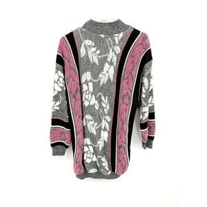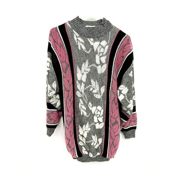 JC & Louis Vintage 80s Floral Textured Knitted Mock Neck Sweater Grandmacore