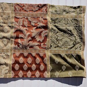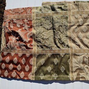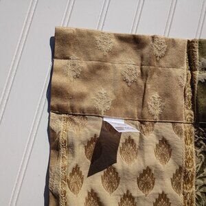JC PENNEY Valances Sage Savannah Damask Floral Scroll Curtain Pair Gold Orange