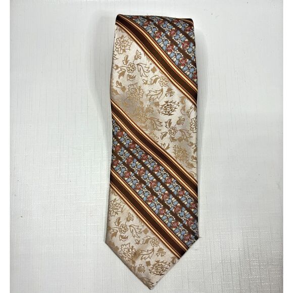 JC Penney Mens Shop Tie Floral Brocade Stripe Formal Business Vintage READ