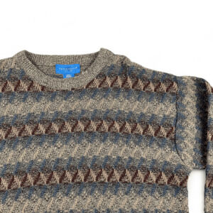 • Brown, burgundy, blue, beige, and gray knit acrylic.