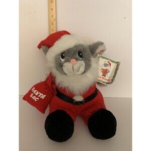 JC Penny Santa Claus Mouse Plush Christmas Stuffed Animal Hat 10 Vintage. The card tag has a name written on it- see photos