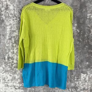 JC Penny Size XL Linen Blend Ribbed Colorblock 2 Tone Sweater Yellow Blue