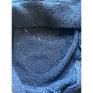 JC Penny The Fox Sweater, navy/dark blue size, large. Patch has been stitched on. The patch is also vintage. Cool, shiny buttons on the cardigan. Has some pilling left after washing and shaving.