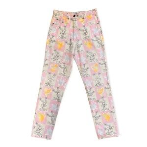 JC de Castelbajac Rare Vintage 90’s Linen / Cotton High Waist Pant in Looney Tunes / Tiny Toon Babs Bunny Sketch Cartoon Motif.