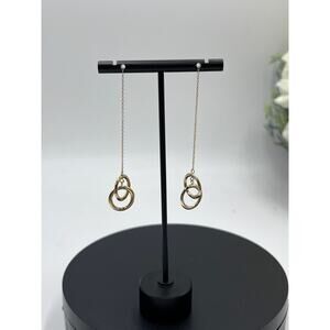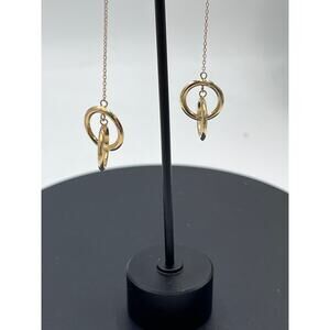 JCM 14K Yellow Gold Double Hoop Circles Dangle Threader Pierced Earrings