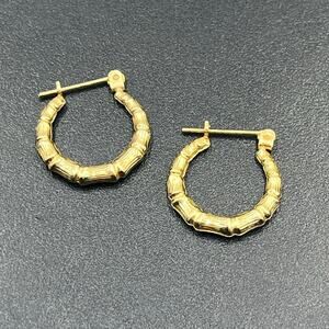 14k Yellow Gold Vintage Marked Bamboo Shrimp Hoop Huggie Earrings