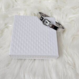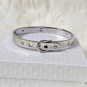 Trendy, bracelet, jewelry, stainless steel, buckle, vtg, vintage, Y2K, glam, designer, lux, timeless, minimalist, party, event, occasion, classic, retro, art deco, casual, chic,